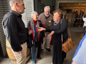 Tatiana Menaker (right) visits with others at Covenant Winery